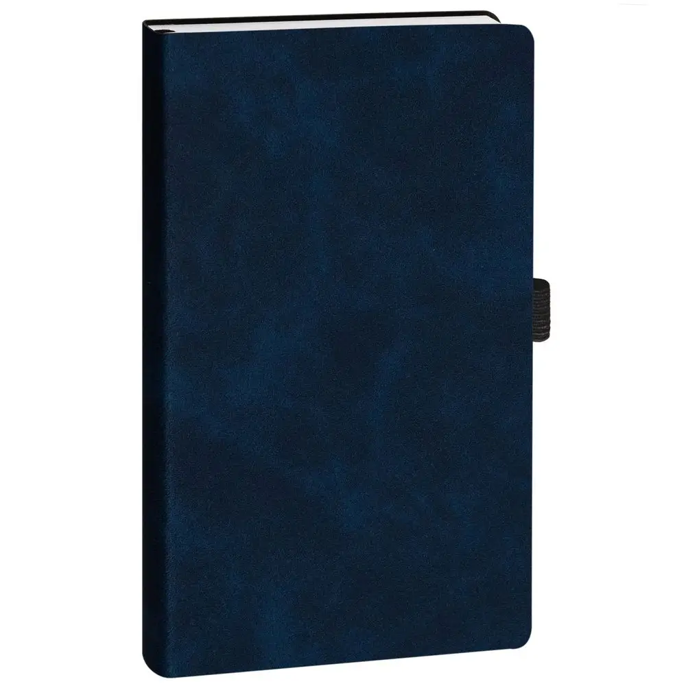 Ежедневник с гибкой обложкой, выполнен из материала Nubuck Touch, темно-синий XX, дополнен ляссе и петлей-резинкой для ручки черного цвета.