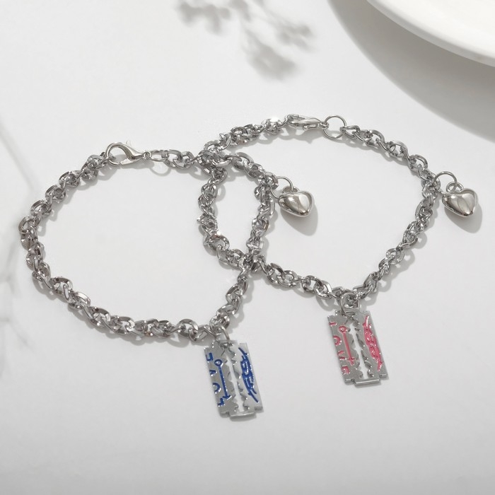 Браслеты «Неразлучники» лезвия, цвет сине-розовый в серебре, 17 размер