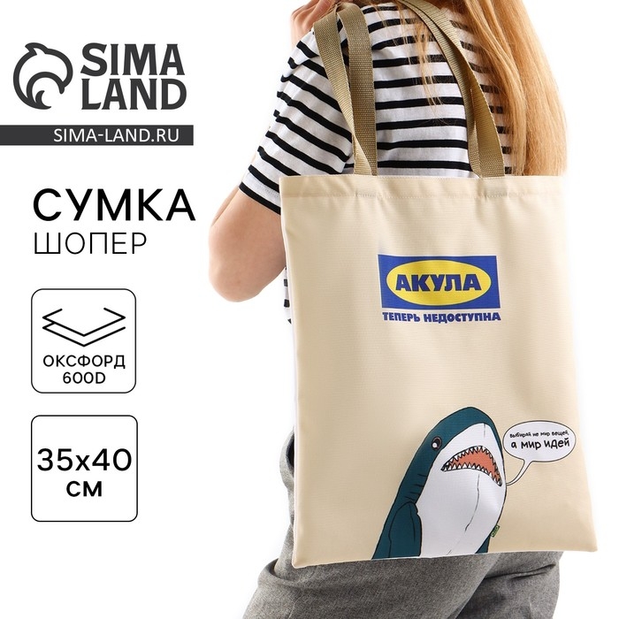 Шопер «Идея», отдел без молнии, без подклада, 35 х 0,5 х 40 см, бежевый