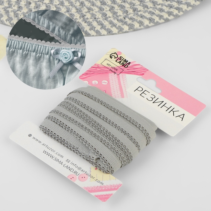 Резинка ажурная бельевая, 10 мм, 10 ± 1 м, цвет серый