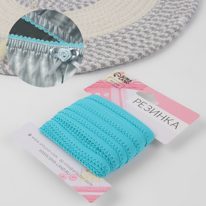 Резинка ажурная бельевая, 10 мм, 10 ± 1 м, цвет морская волна