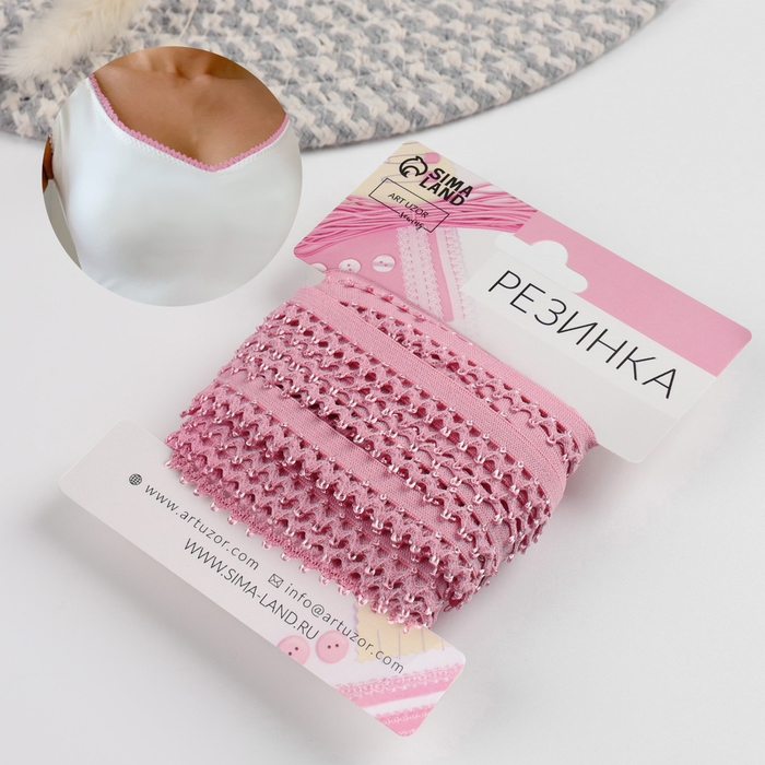 Резинка ажурная бельевая, 13 мм, 10 ± 1 м, цвет розовый