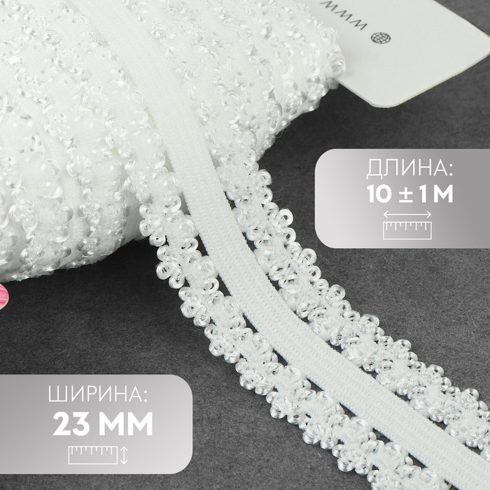 Резинка ажурная бельевая, 23 мм, 10 ± 1 м, цвет белый