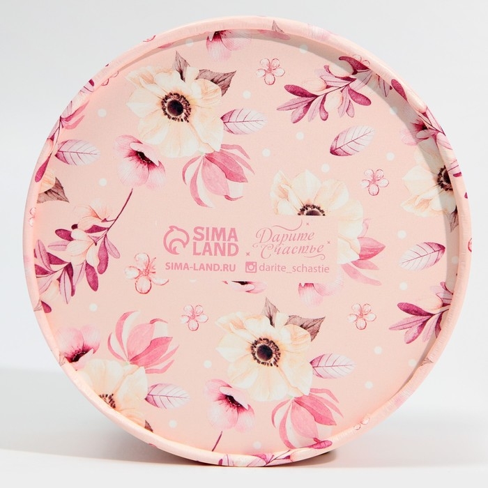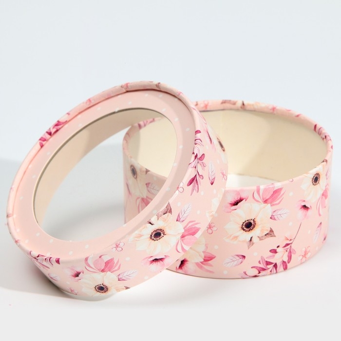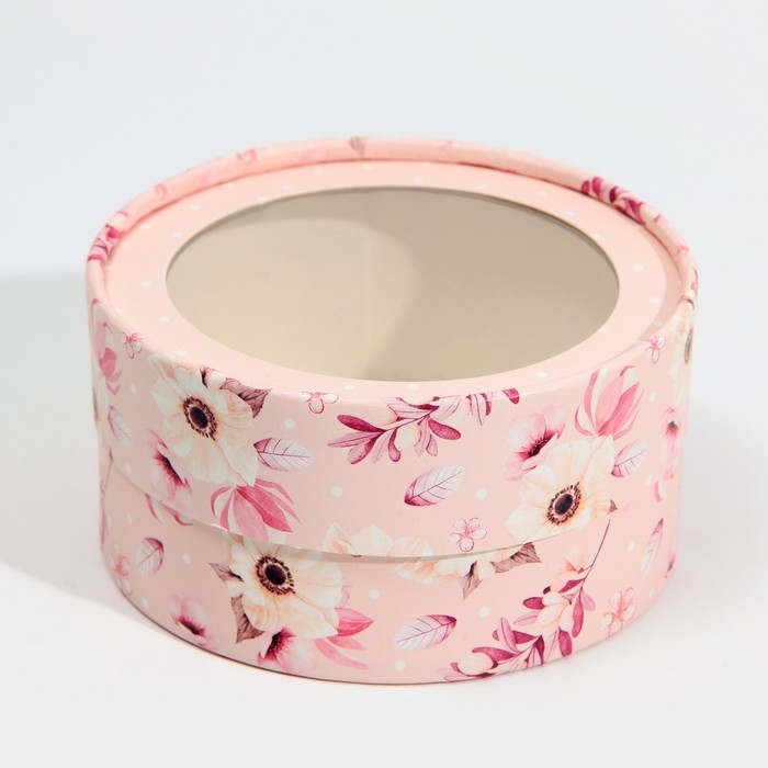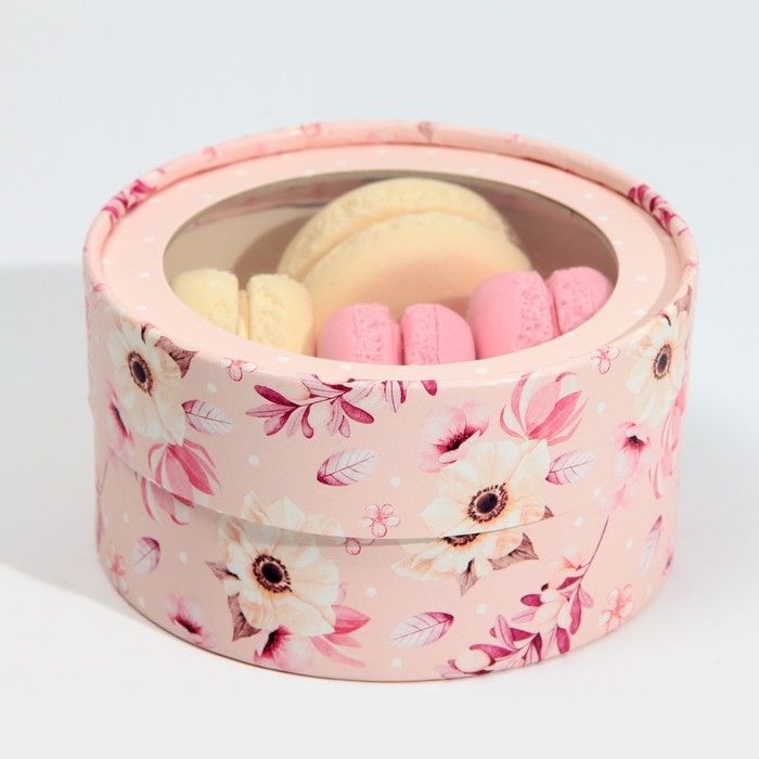 Коробка для макарун, кондитерская упаковка тубус с окном, «Розовые цветы» 12 х 12 х 5 см