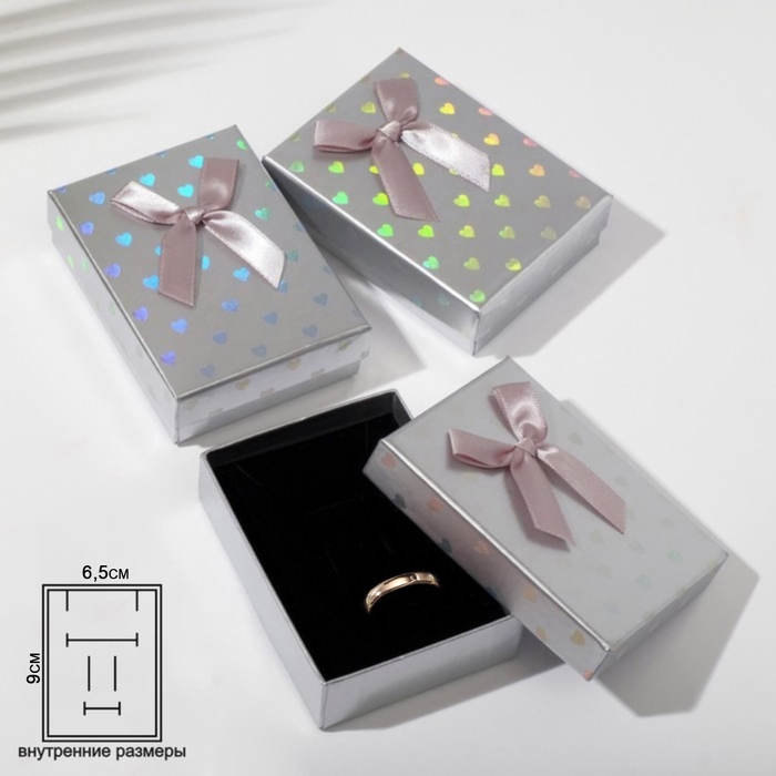 Коробочка подарочная под набор «Сердечки», 7×9,5 (размер полезной части 6,5×9см), цвет серый