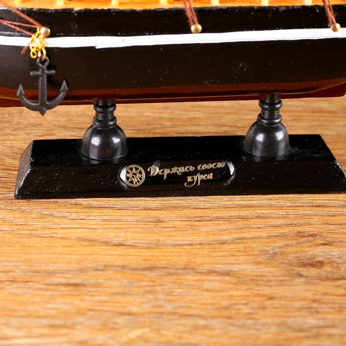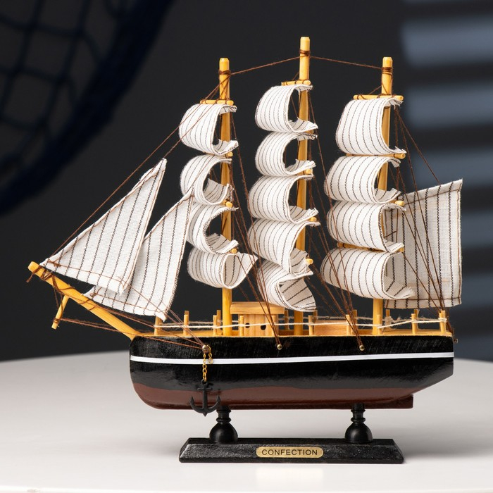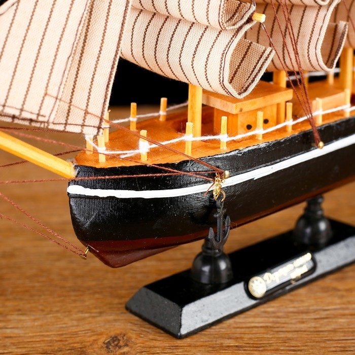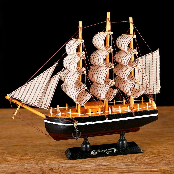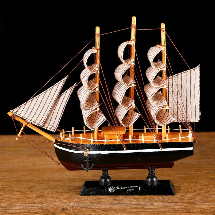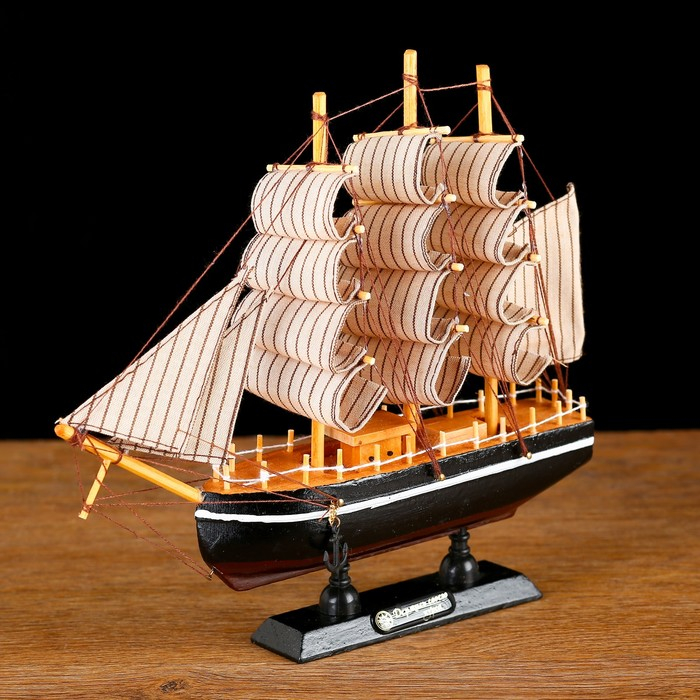 Корабль сувенирный малый «Илия», борта чёрные, паруса бежевые с полосами, 5,5×23,5×23,5 см