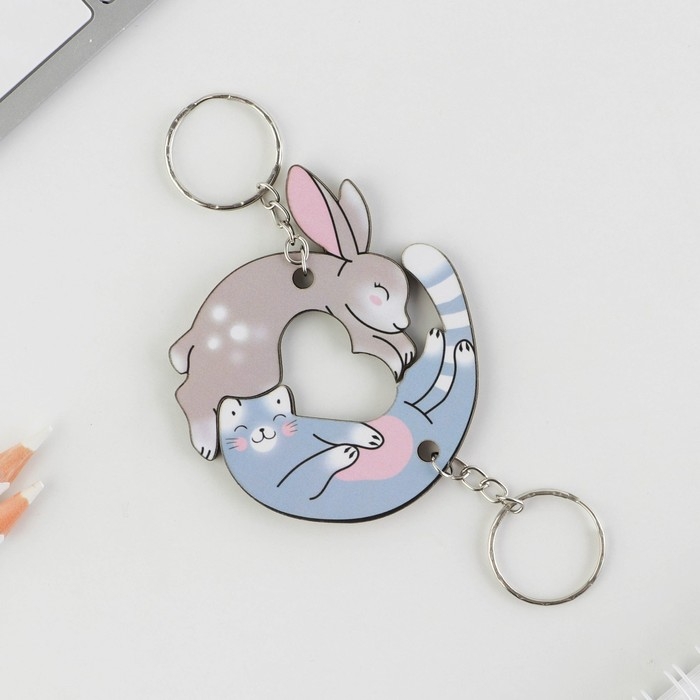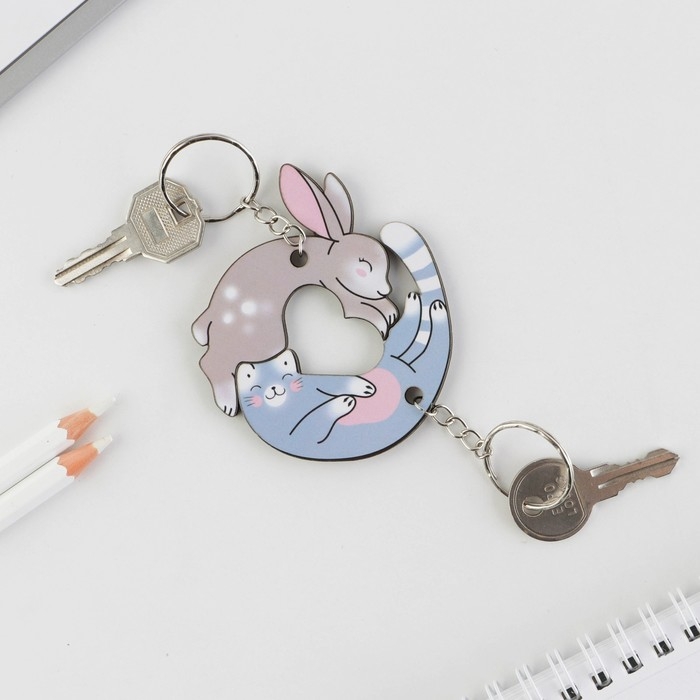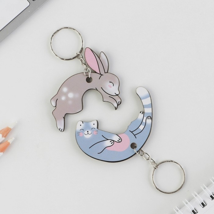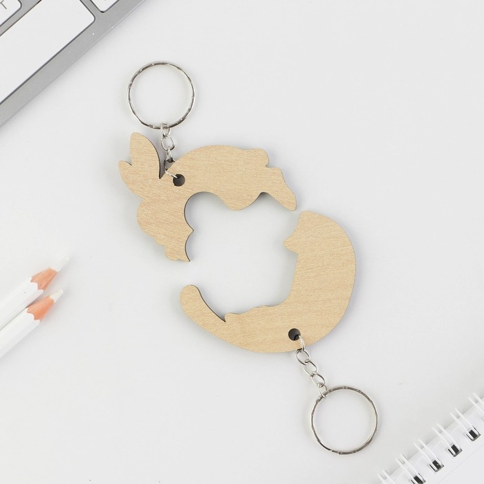 Брелок для ключей парный «Заяц и кот», деревянный, 5,6 х 3,2
