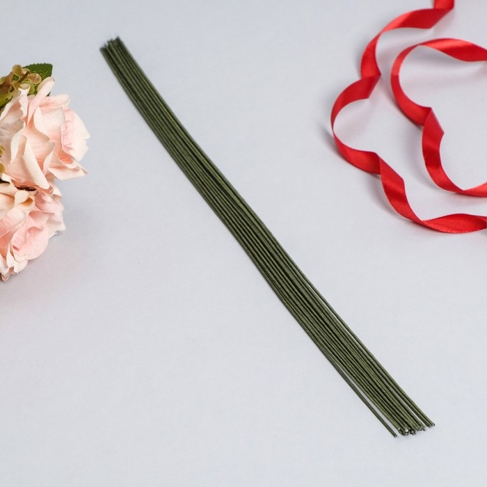 Флористическая проволока в бумажной оплётке "Зелёная", длина 36 см, 1,2 мм, набор 20 шт