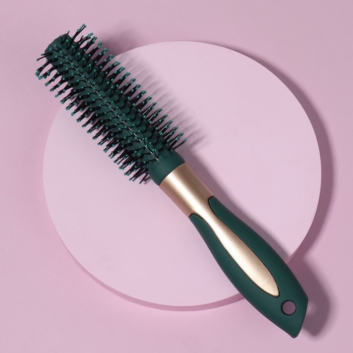 Брашинг, прорезиненная ручка, d = 2/4 × 23 см, цвет зелёный/золотистый