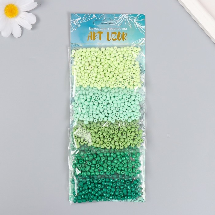 Бисер круглый 6/0 "Палитра зелёного" 5 цветов х 20 гр 20х8х0,7 см