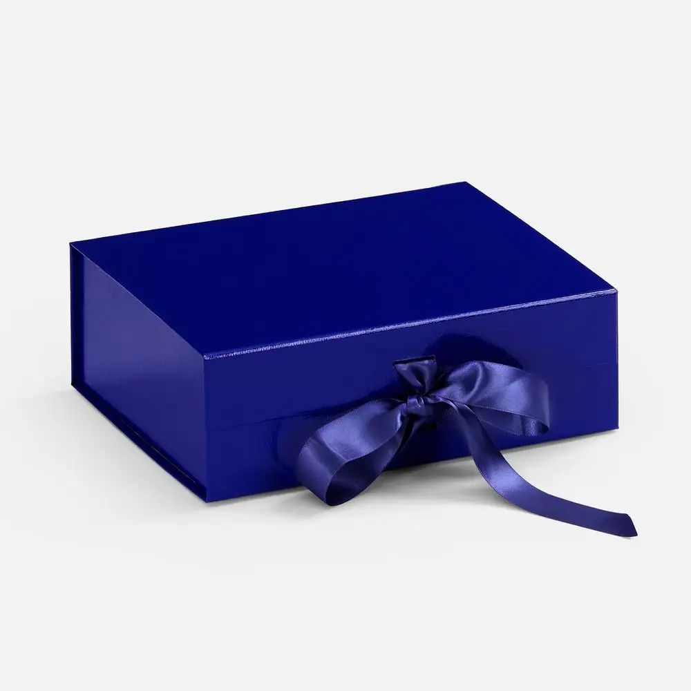 Коробка из переплетного картона с лайнером, ламинированым полуглянцевой текстурной пленкой устойчив к царапинам. Крышка на двух магнитах дополнительно фиксируется репсовой лентой.Толщина картона 2 мм.