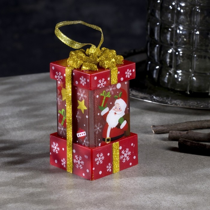 Светодиодная фигура «Красный подарок с Дедом Морозом» 6.3 × 11.5 × 6.3 см, пластик, батарейки АААх3 (не в комплекте), эффект пламени