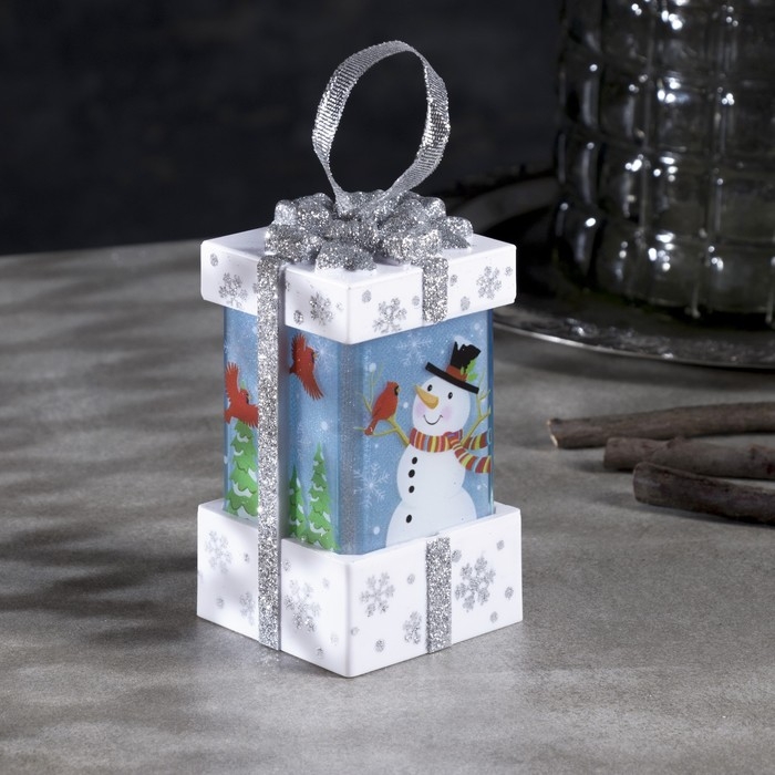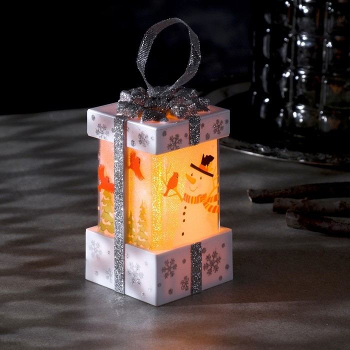 Светодиодная фигура «Белый подарок со снеговиком» 6.3 × 11.5 × 6.3 см, пластик, батарейки АААх3 (не в комплекте), эффект пламени
