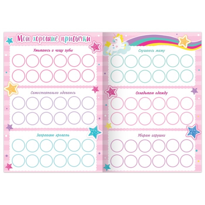 Книга с наклейками-оценками — прекрасный мотиватор для ребёнка. Он который поможет привить малышу правильные привычки и научит соблюдать распорядок дня.