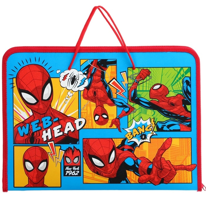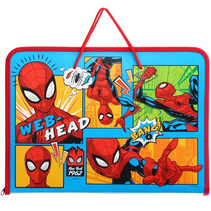 Папка пластиковая с ручками А4, на молнии, Человек-паук