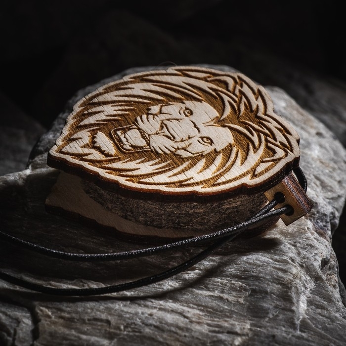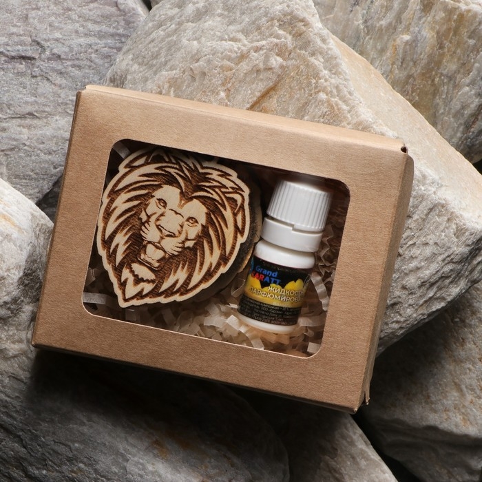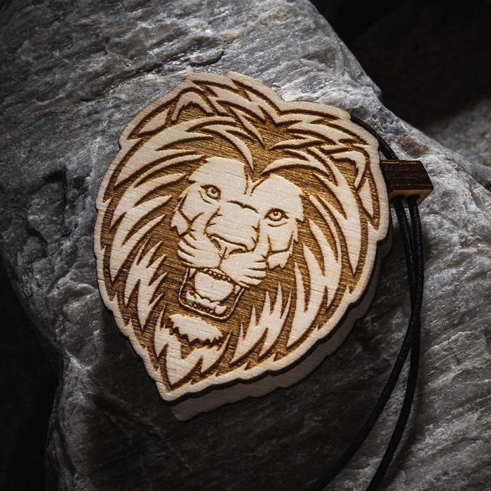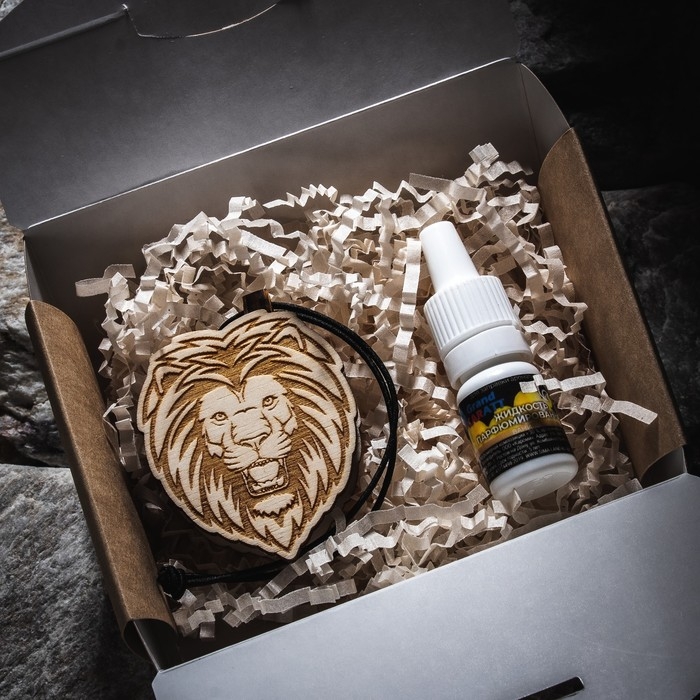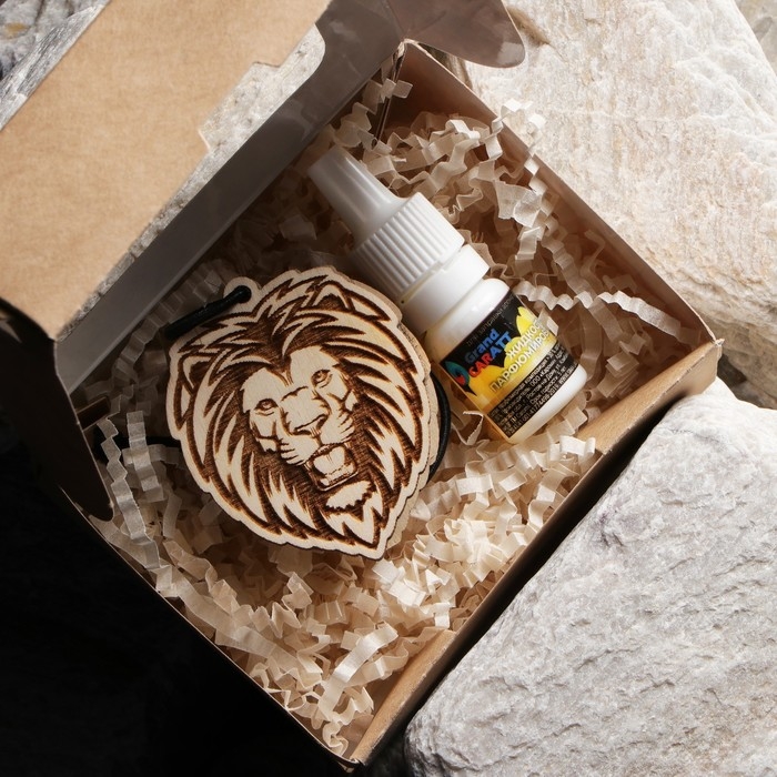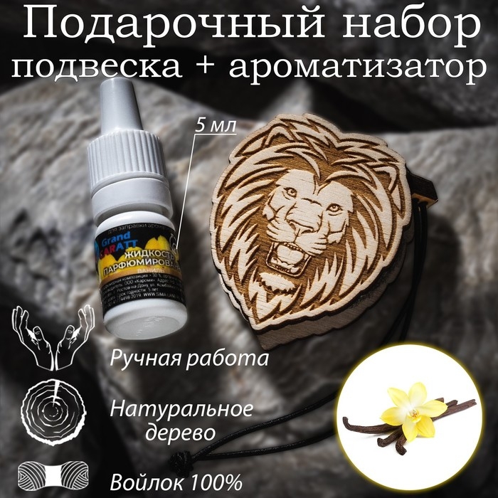 Ароматизатор подвесной из натурального дерева, набор: подвеска Лев (дерево, войлок), парфюмированная пропитка Ваниль, 5 мл