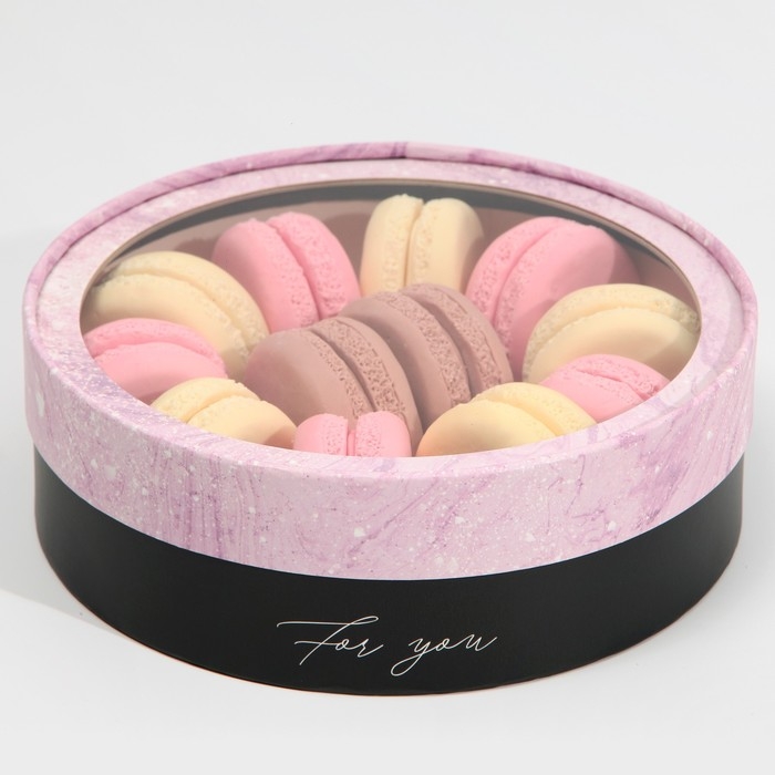 Коробка для макарун, кондитерская упаковка тубус с окном, For you 20 х 20 х 5 см