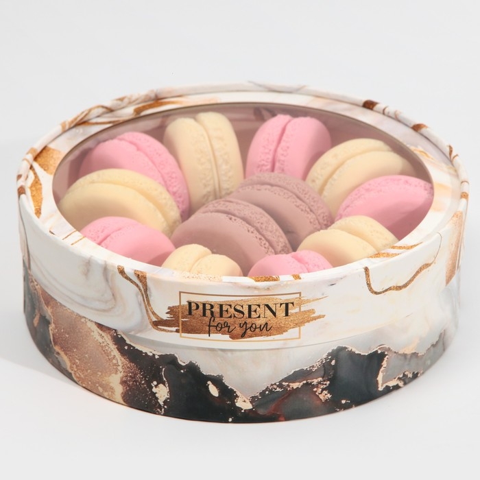 Коробка для макарун, кондитерская упаковка тубус с окном, «Мрамор» 20 х 20 х 5 см