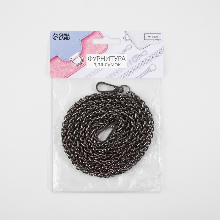 Цепочка для сумки, с карабинами, железная, 7 × 7 мм, 120 см, цвет чёрный никель