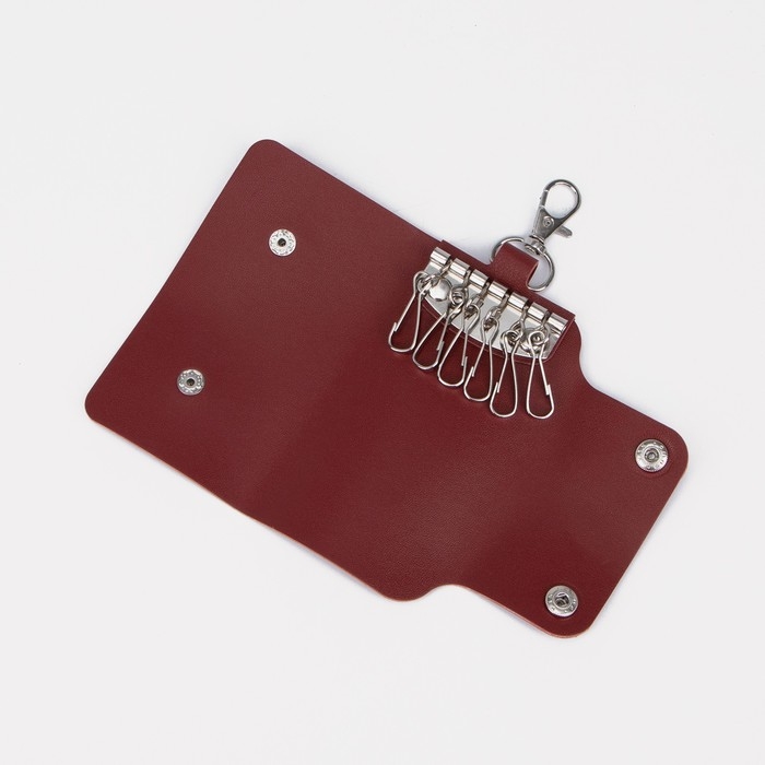 Ключница на кнопках, 11 см, 7 карабинов, цвет красный