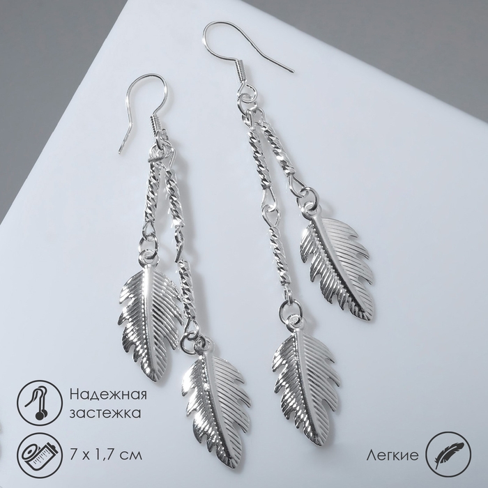 Серьги висячие «Листья» на цепочках, цвет серебро, 7 см