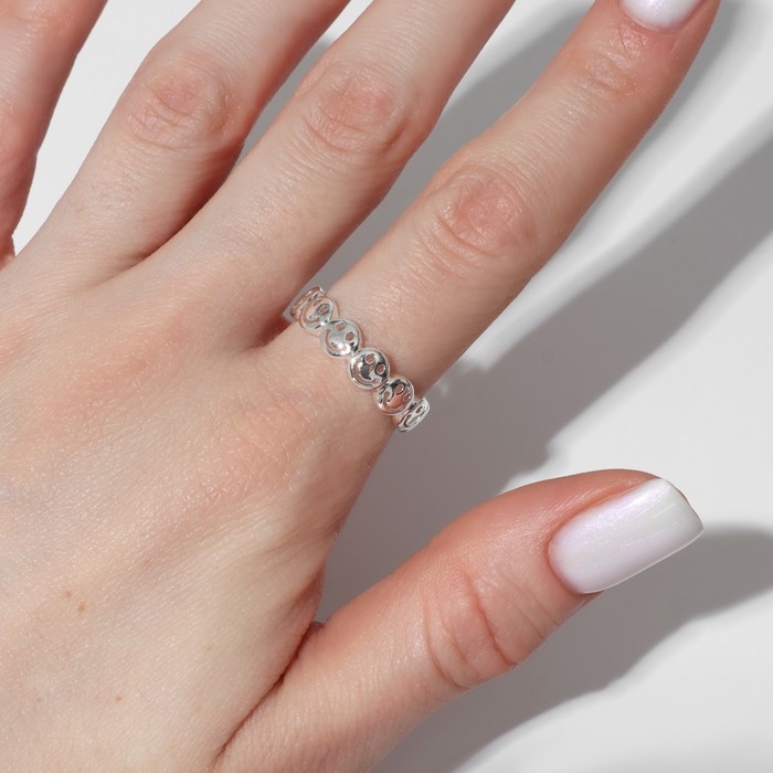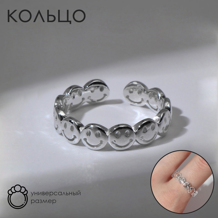 Кольцо «Тренд» смайлики, цвет серебро, безразмерное