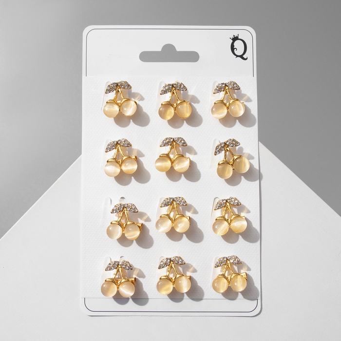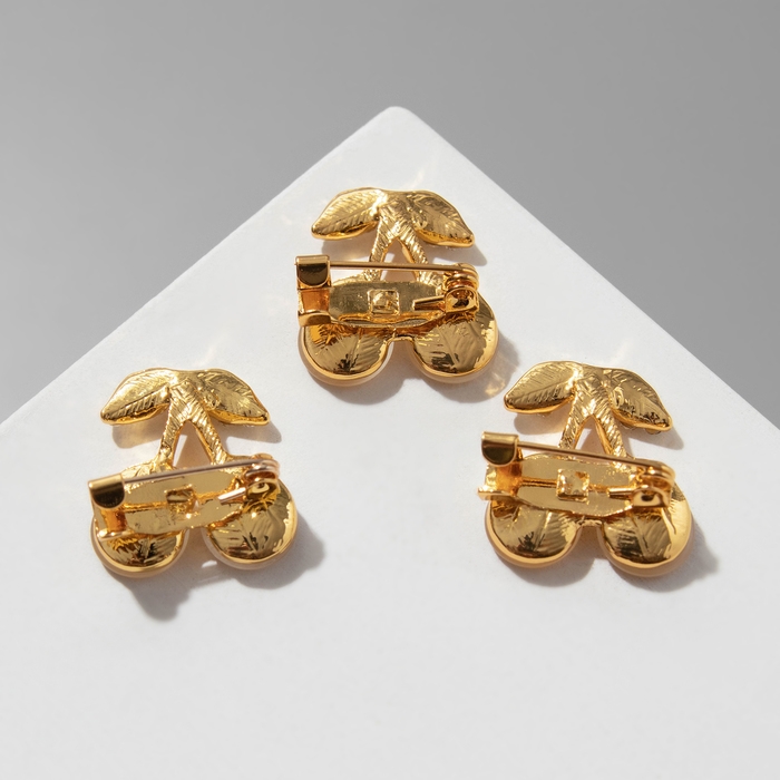 Брошь «Вишенки» наливные, цвет белый в жёлтом золоте (неделимая фасовка 12 шт., цена за шт.)