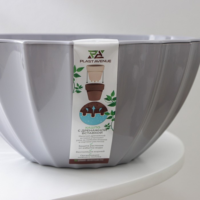 Кашпо для цветов с автополивом «Ракушка», 2,4 л, d=22см, h=10,5 см, цвет серый