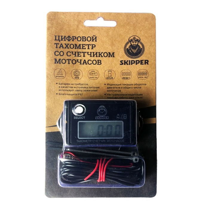 - Тахометр со счетчиком моточасов, без подсветки дисплея,влагозащита IP68, длина кабеля 1,45м