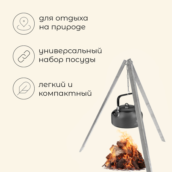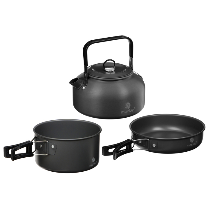 Набор туристической посуды Maclay: чайник, кастрюля, сковорода, 3 чашки, черпак, лопатка, губка