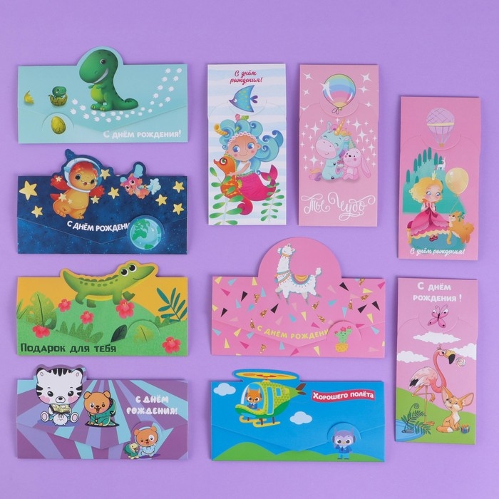 Набор формовых конвертов для денег «Весёлые персонажи», 10 шт