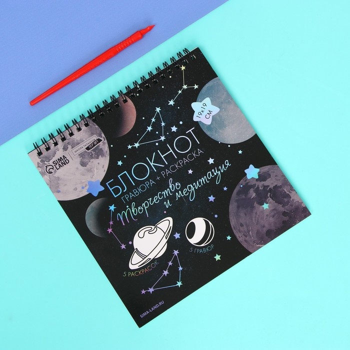 Гравюра блокнот - раскраска детская «Космос», 19 х 19 см