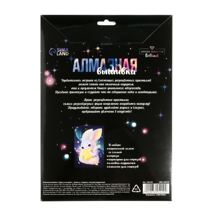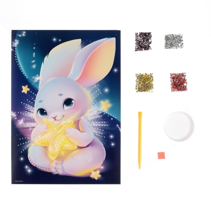Алмазная мозаика с частичным заполнением для детей «Зайка со звездой»