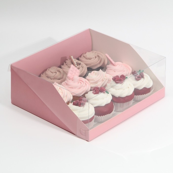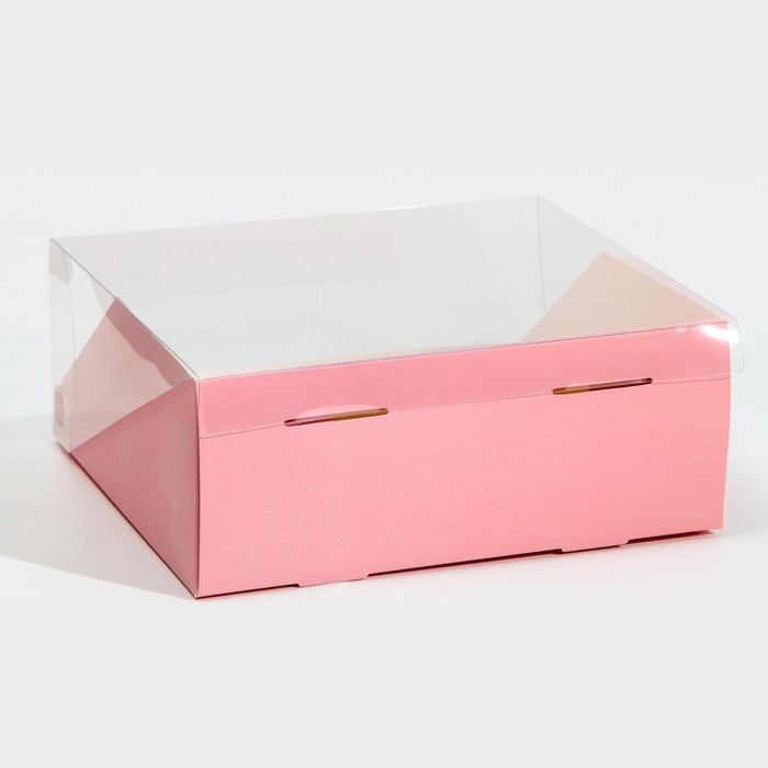 Коробка кондитерская с PVC-крышкой, упаковка, «Розовый», 25 х 22,5 х 10 см
