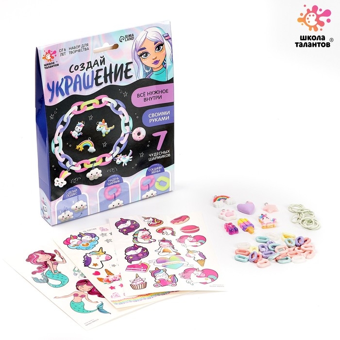 С набором для творчества вы сможете создать браслет с милыми шармиками. Всё, что для этого понадобится, уже есть в комплекте.