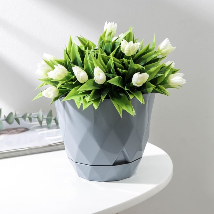 Горшок для цветов с поддоном Laurel, 1,3 л, d=14,5 см, h=12,5 см, цвет серый
