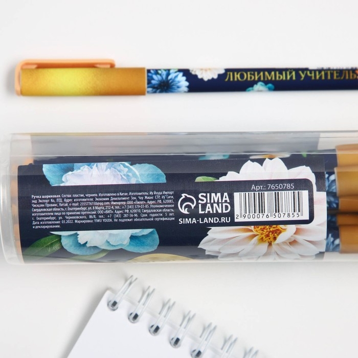 Ручка в тубусе «Любимому воспитателю» пластик, синяя паста, 1.0 мм