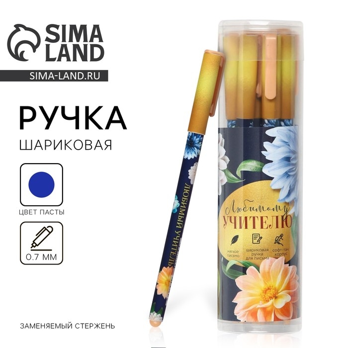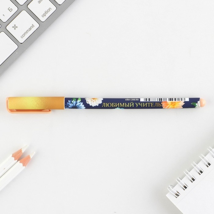 Ручка с колпачком и нанесением soft-touch «Любимому учителю», синяя паста 0.7 мм