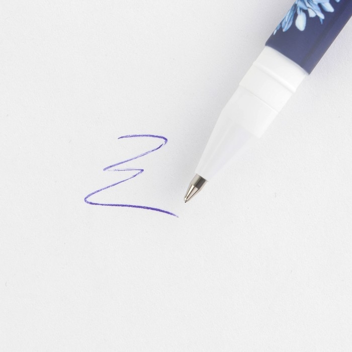 Ручка шариковая синяя паста, пластиковая с цветком "С 8 Марта"