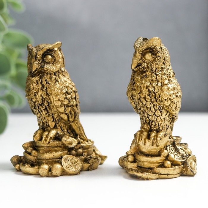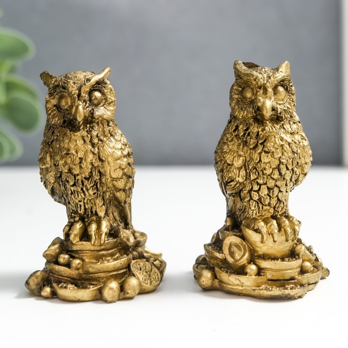 Нэцке полистоун под бронзу "Филины на монетах" набор 2 шт 6х3,5х4 см