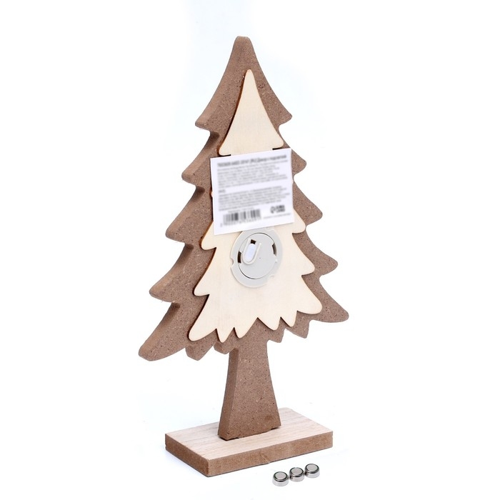 Изделие выполнено из экологичного материала — дерева и работает от батареек.