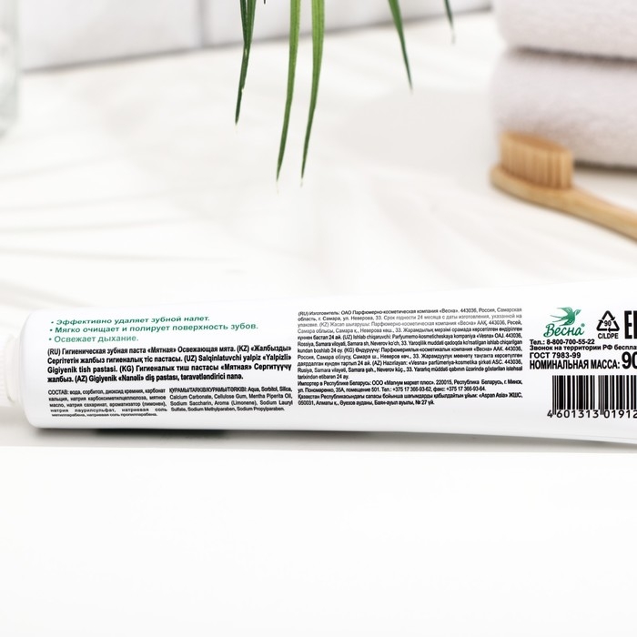 Зубная паста весна, главаптека мятная, освежающая мята, 90 г, без футляра