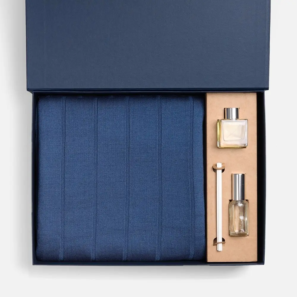 плед - акрил 100%, плотность 310 г/м² ; флакон - стекло, палочки из файбера; коробка - переплетный картон, бумага Classy Covers