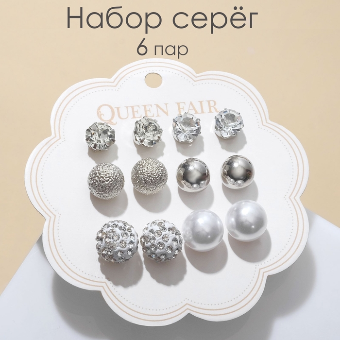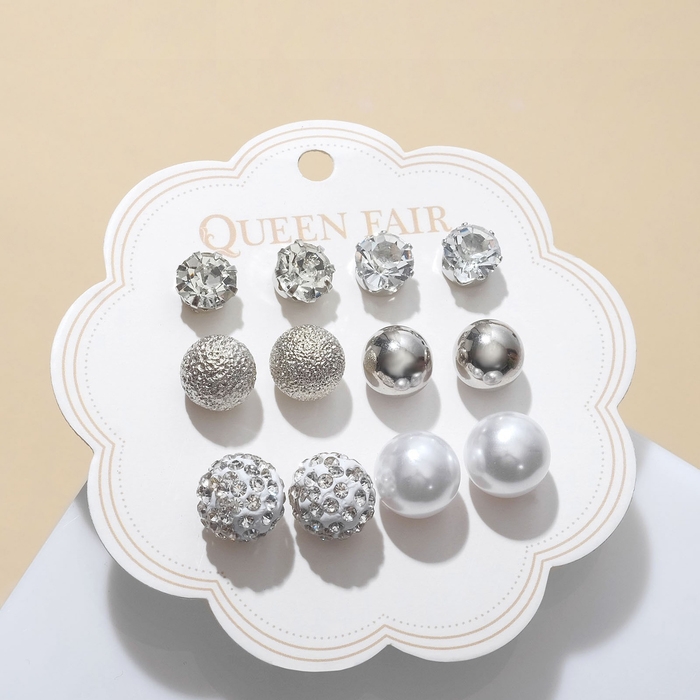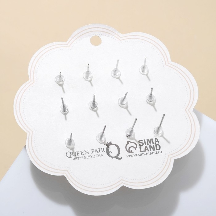 Пусеты 6 пар «Жемчужные» минимал d=8-11 мм, цвет белый в серебре