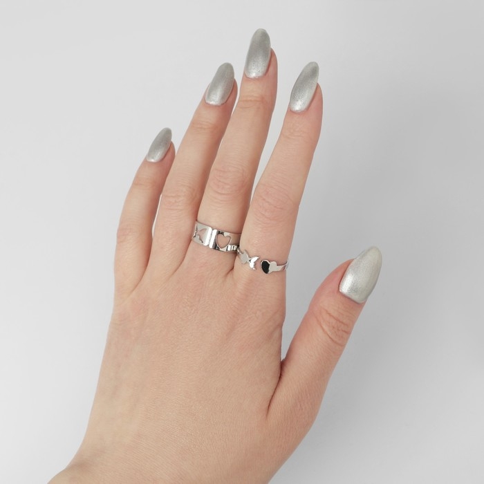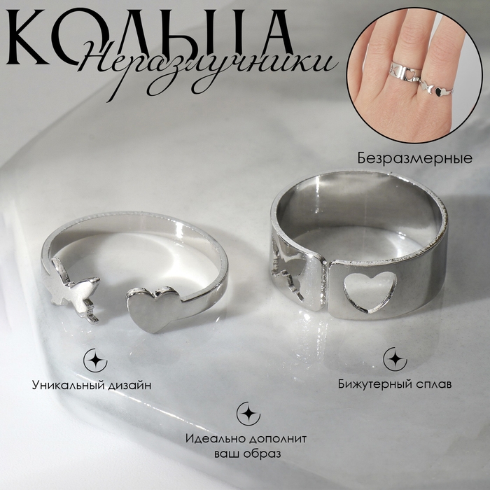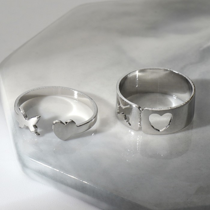 Набор колец 2 штуки «Неразлучники» нежность, цвет серебро, безразмерные