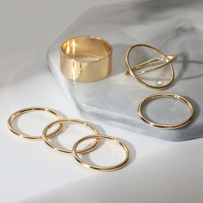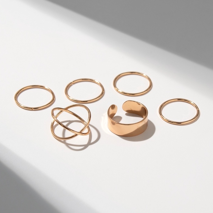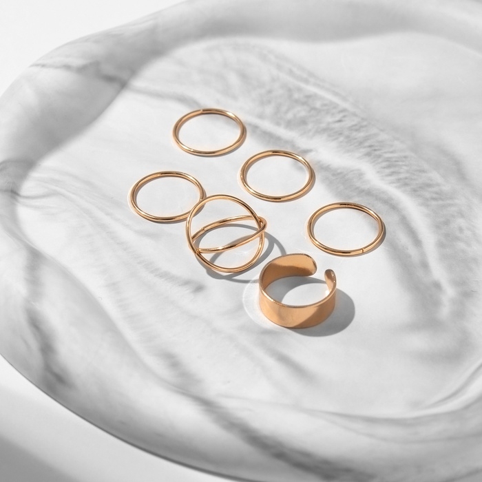 Набор колец 6 штук «Тренд» линия, цвет золото, размер 17