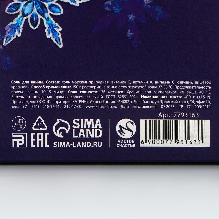 Соль для ванны «Счастья в дом!», 400 г, аромат жасмина, Новый Год