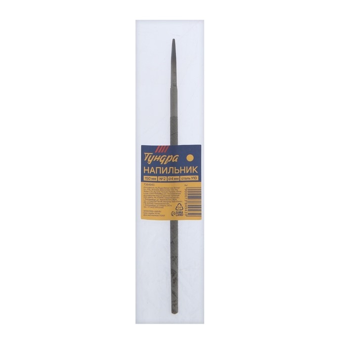 Напильник ТУНДРА, круглый, сталь У10, без рукоятки, d = 4 мм, №2, 150 мм