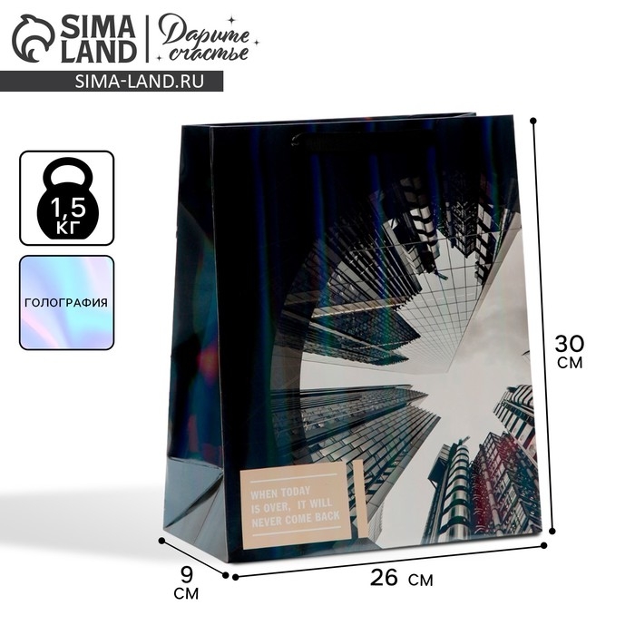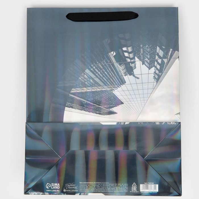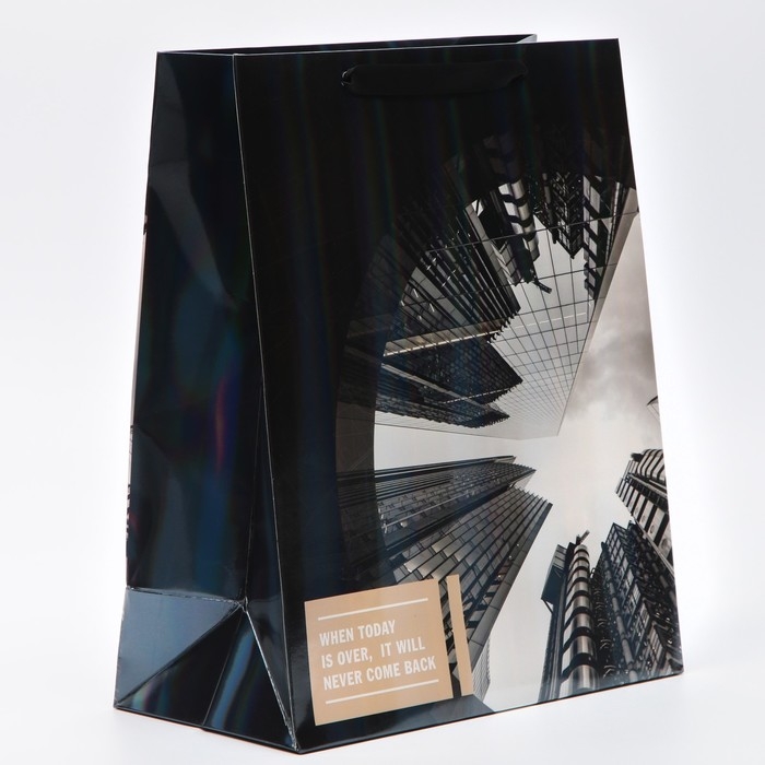 Пакет подарочный ламинированный вертикальный, упаковка, «Небоскрёб», радужная голография, М 26 х 32 х 12 см