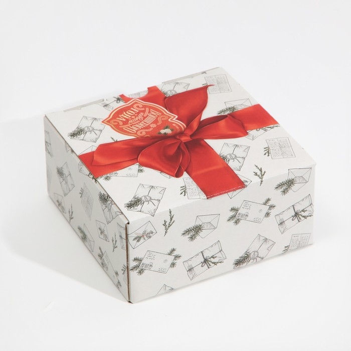 Коробка подарочная новогодняя складная «Ретро почта», 15 х 15 х 7 см, Новый год